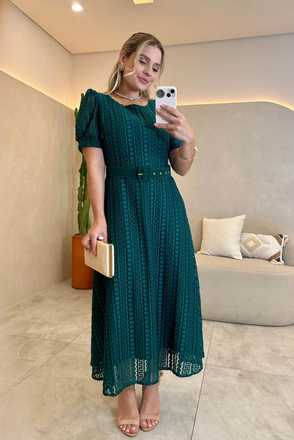O vestido perfeito para momentos especial. Esse dress está de tirar o folego, pensando nos mínimos detalhes, sua modelagem é midi bem rodado, acompanha cinto para modelar e deixa bem acinturado, sua cor uva deixando a peça ainda mais apaixonante, possui manga princesa com leve transparência e cola canoa trazendo o romantismo para a peça. Abertura por zíper e possui forro. O vestido foi confeccionado em renda com toque delicado, sendo ideal para quem procura peças românticas, porém que possibilitam looks estilosos e atemporais.