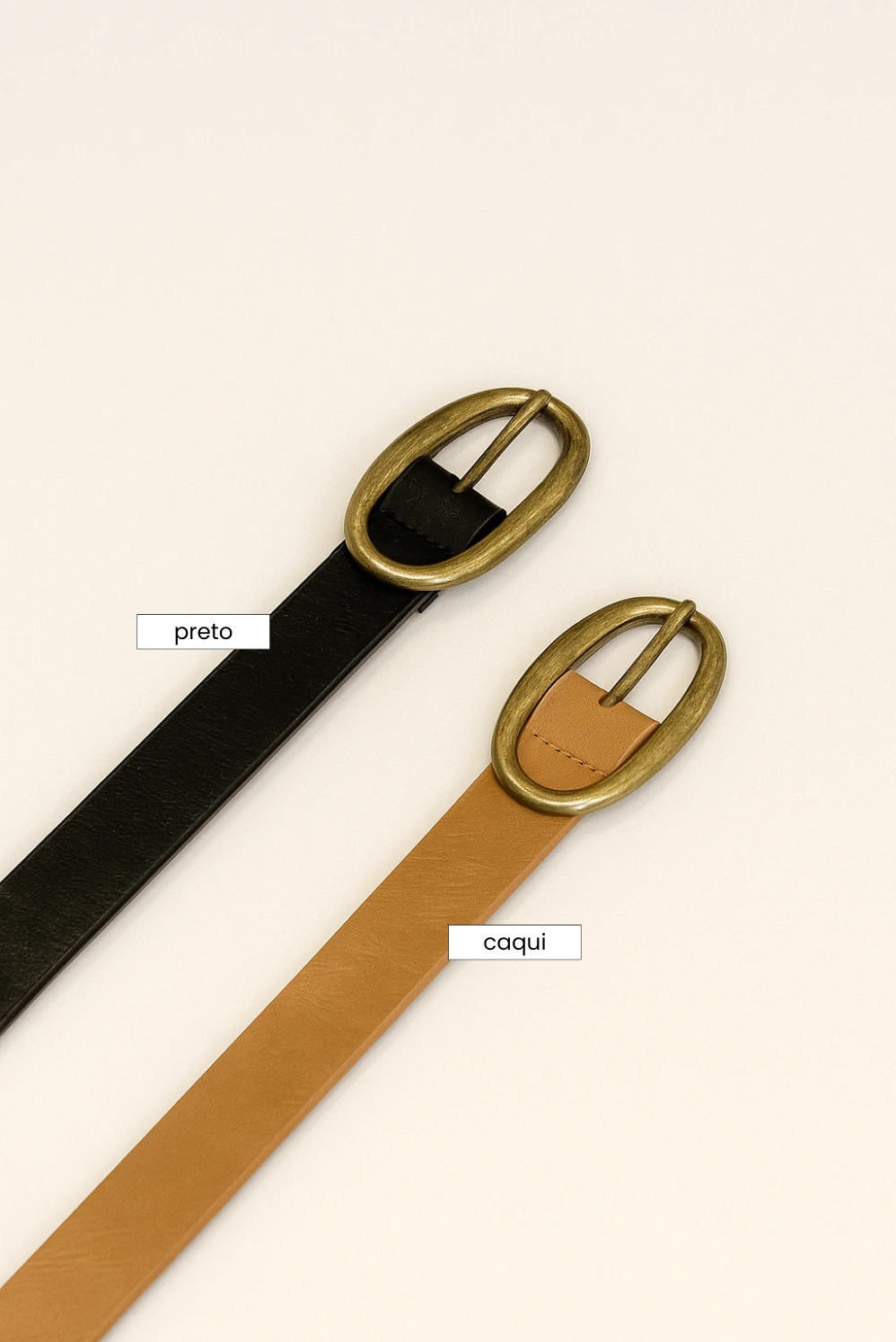 Clássico e versátil, o Cinto Fivela Rustic é confeccionado em material resistente e está disponível em duas cores elegantes: preto e caqui. A fivela oval em metal envelhecido garante um toque rústico e atemporal, perfeito para compor desde produções casuais até looks mais sofisticados.