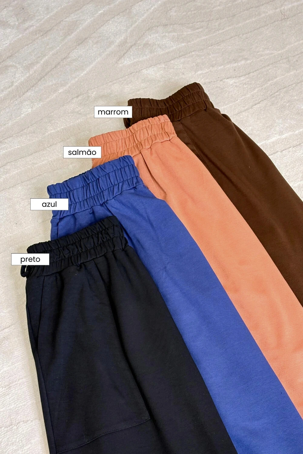 Possui comprimento midi com corte reto e cintura alta, que valoriza a silhueta e traz um visual alongado. O cós com elástico embutido e amarração frontal garante ajuste perfeito e conforto ao vestir.