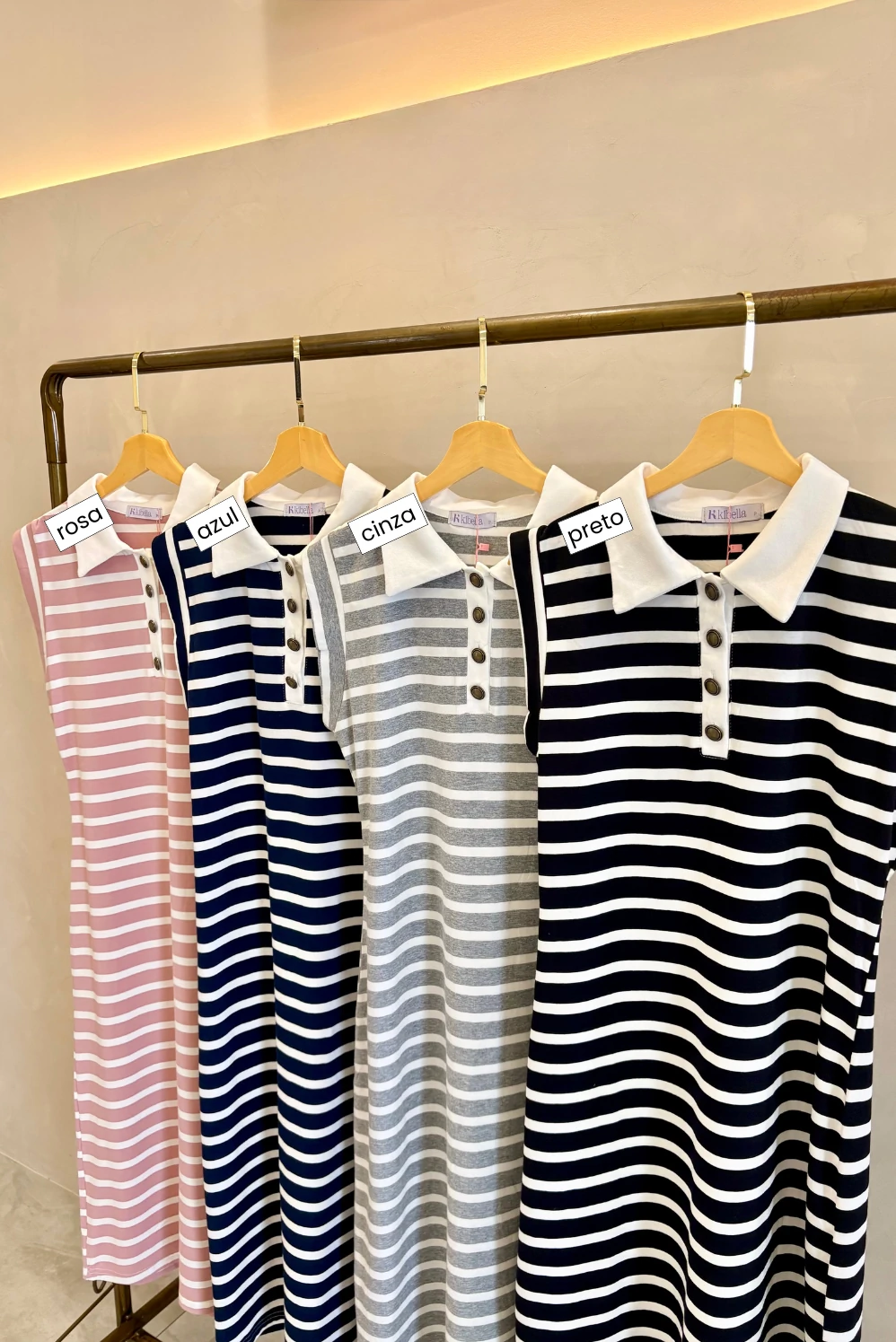 O Vestido listrado traz um charme moderno com toque clássico, unindo conforto e estilo em uma peça prática para o dia a dia. Sua modelagem reta valoriza a silhueta sem marcar, garantindo leveza e sofisticação no vestir.