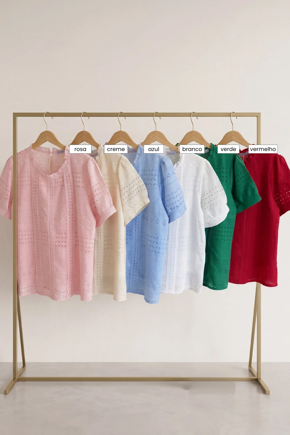 - Cores : Azul, Branco, Creme, Rosa, Verde e Vermelho.